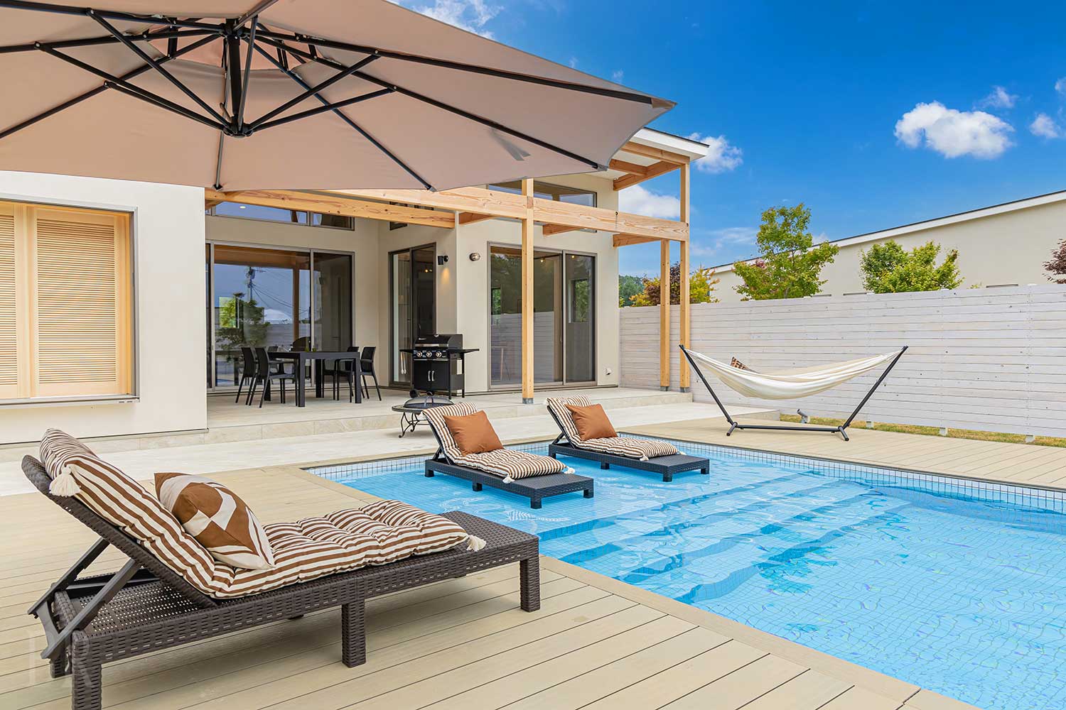 ラグジュアリーなヴィラ型の客室には、気軽にリゾート気分が味わえる”プライベートプール”をご用意。