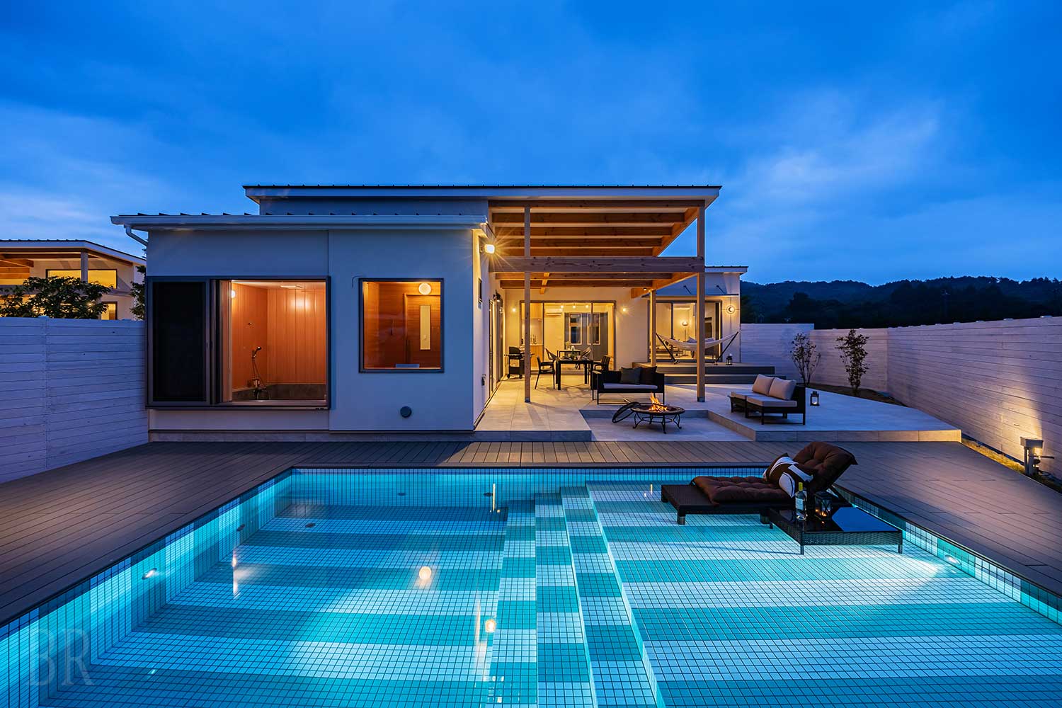 日中の水景や夜のライトアップされた景色が非日常を演出し、リゾートグランピングを一層特別なものにしてくれます。