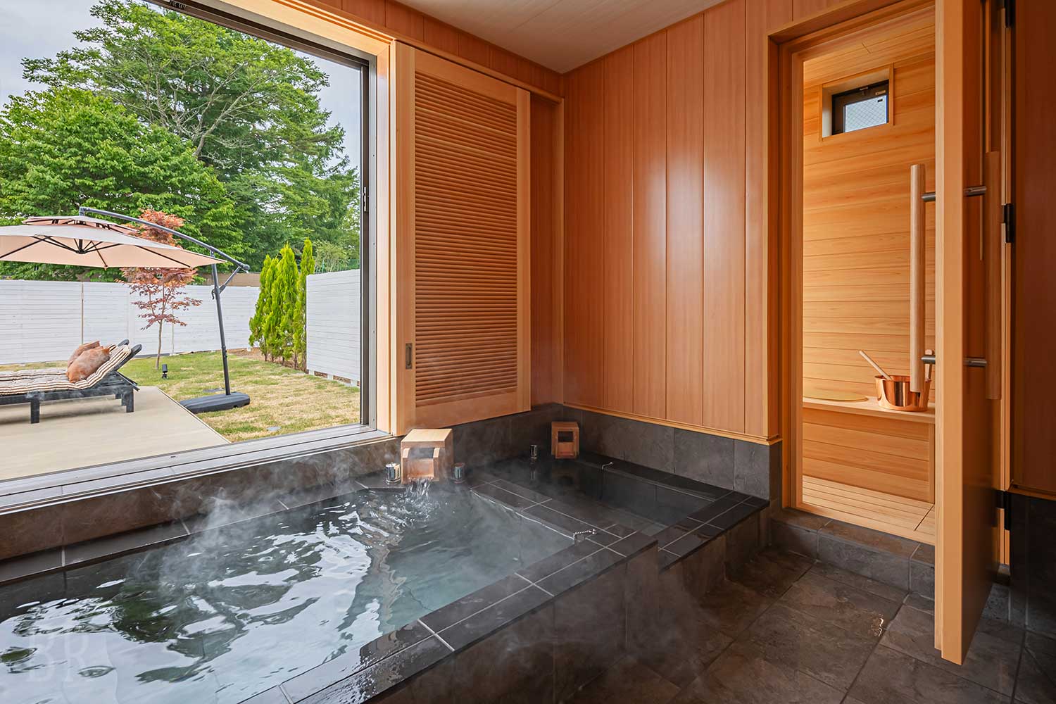 客室温泉、サウナ、プライベートプールを備えた完全なる専有空間です。